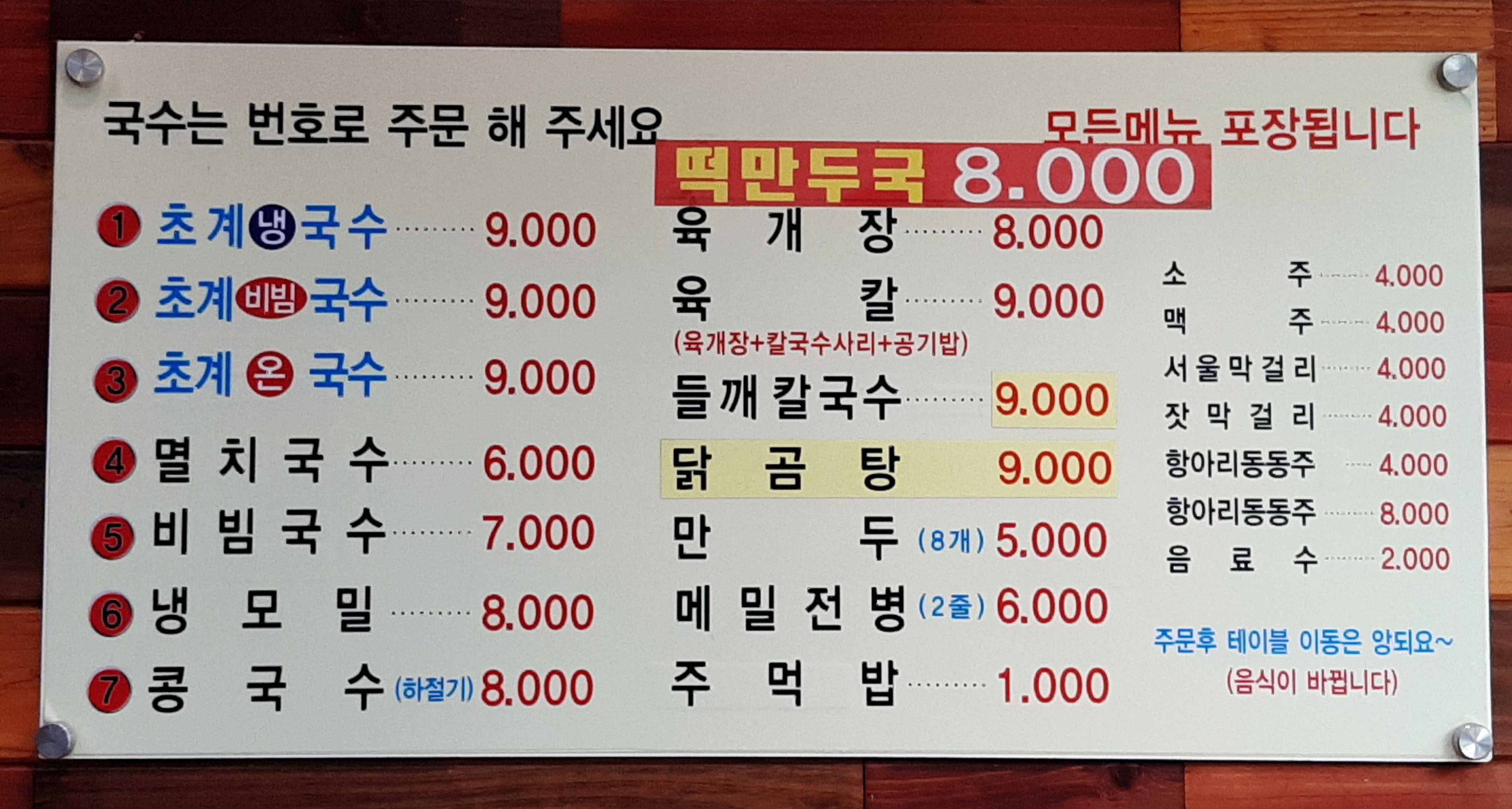 온계국수(9.000원)