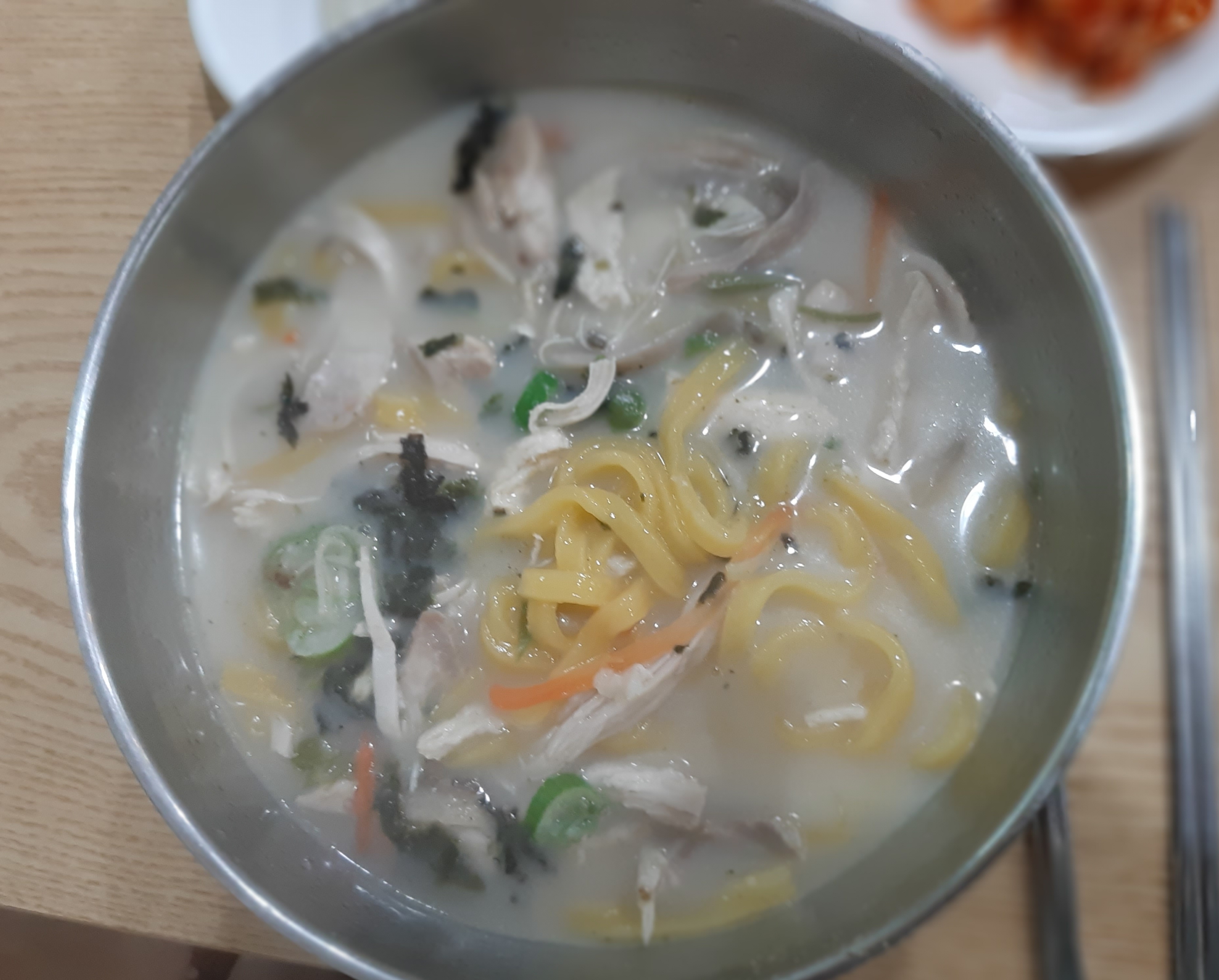 온계국수는 비빔국수와 면이 달라요. 칼국수같은 면입니다. 국물은 사골국물같은 깊은 맛이 있어, 스산한 오늘같은 날씨에 딱이었어요. 다른 테이블도 살짝 둘러보니 거의 온계국수를 먹고 있었습니다.